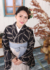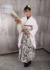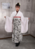 袴は墨で描いたボタニカル柄で、モノトーンの魅力を最大限に生かして。