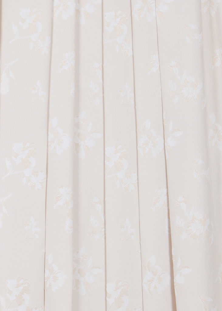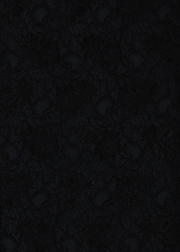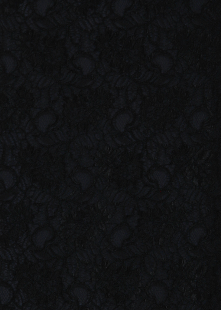 全身レース柄で重くなりがちな表情を、襟元に施したエンブロイダリーレースが引き締める。